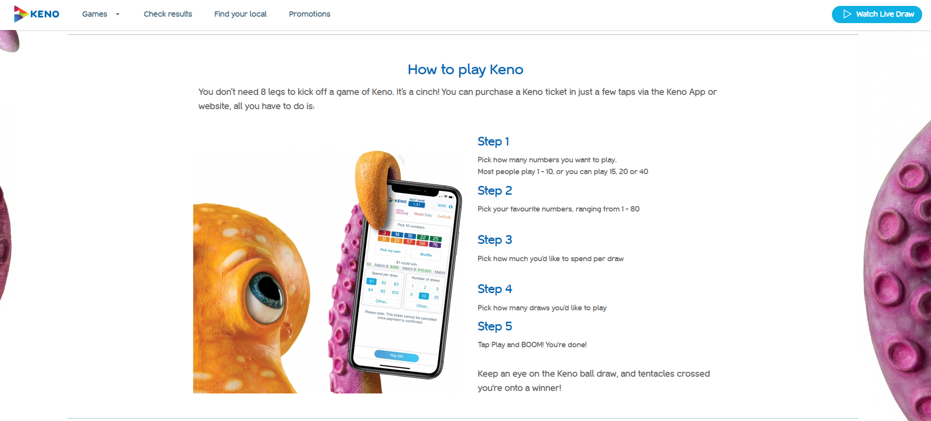 As part of creating a new brand ambassador 'Ken the Keno Kraken', I was also charged with writing a website, complete with backstory for how this 8-legged legend came to be.
